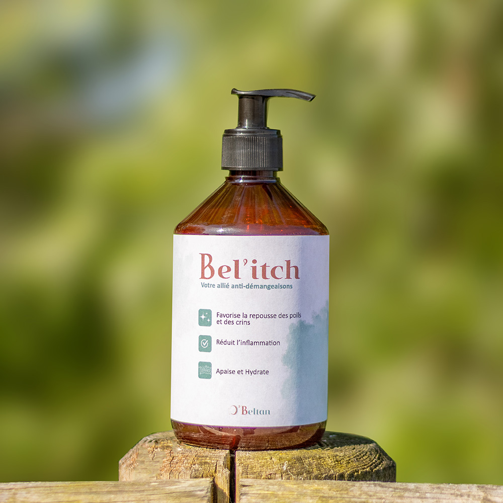 Bel’itch, le soin naturel par O’Beltan Offrez à votre cheval une solution naturelle pour passer un été serein, sans grattages ni inconforts. Bel’itch s’intègre parfaitement dans une approche globale de naturopathie équine, respectueuse du bien-être et de l’environnement. :