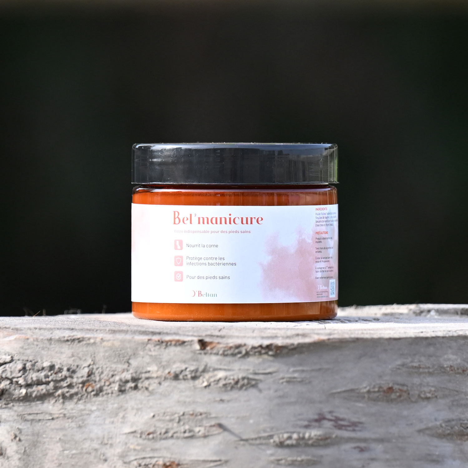 Pour des sabots sains et des pieds propres, découvrez Bel’Manicure, une graisse à pied enrichie en huiles essentielles.