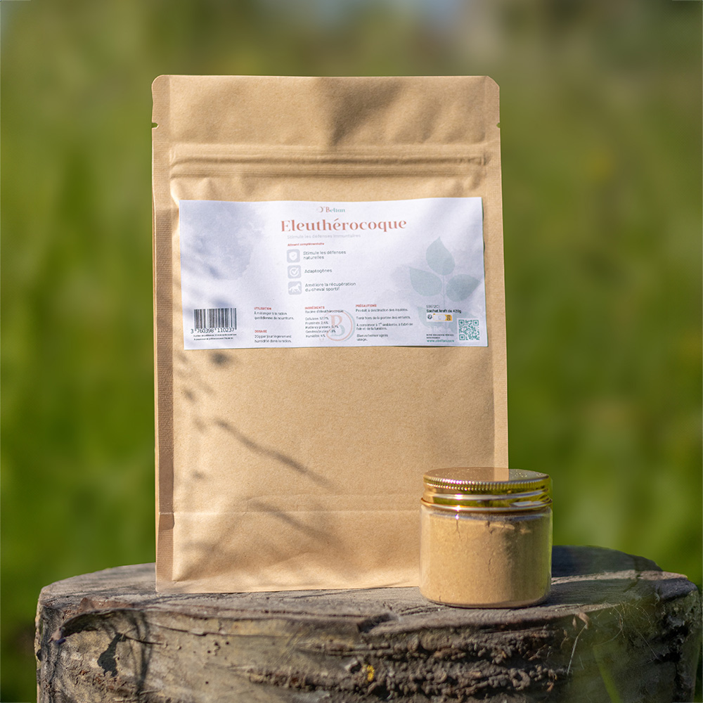 O’BELTAN vous propose l’Éleuthérocoque, une plante adaptogène incontournable pour renforcer les défenses naturelles et favoriser une meilleure récupération après l’effort. Idéal pour les chevaux de sport, d’endurance ou en période de convalescence.